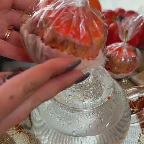 Each Tea Bomb is handcrafted with isomalt (a sugar substitute safe for diabetics) and filled with rooibos tea, pumpkin pieces, and a blend of cozy spices ā cinnamon, clove, orange peel, and more.