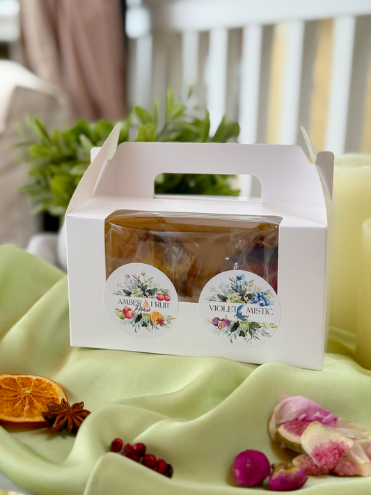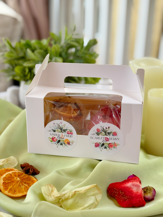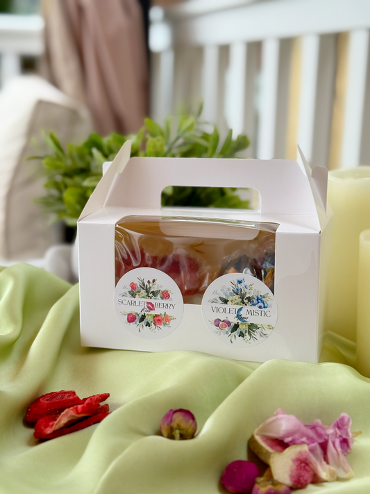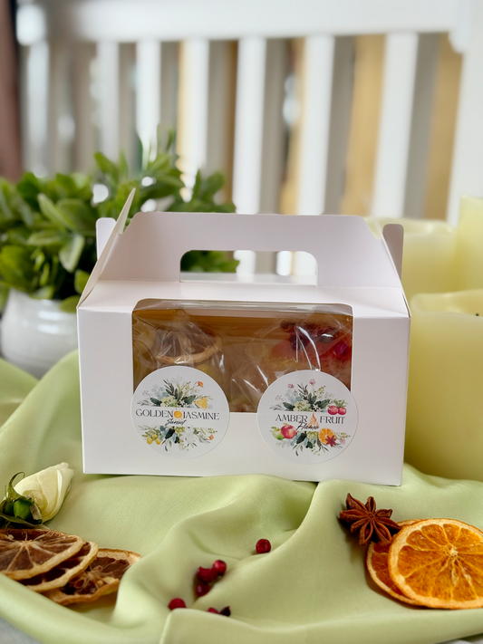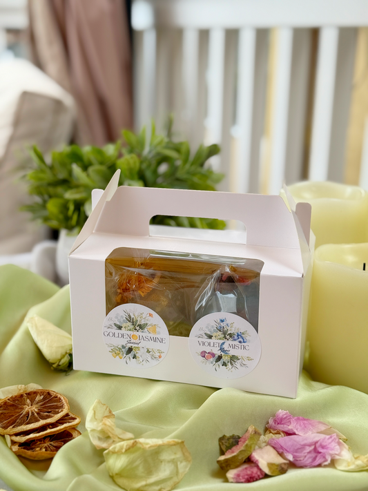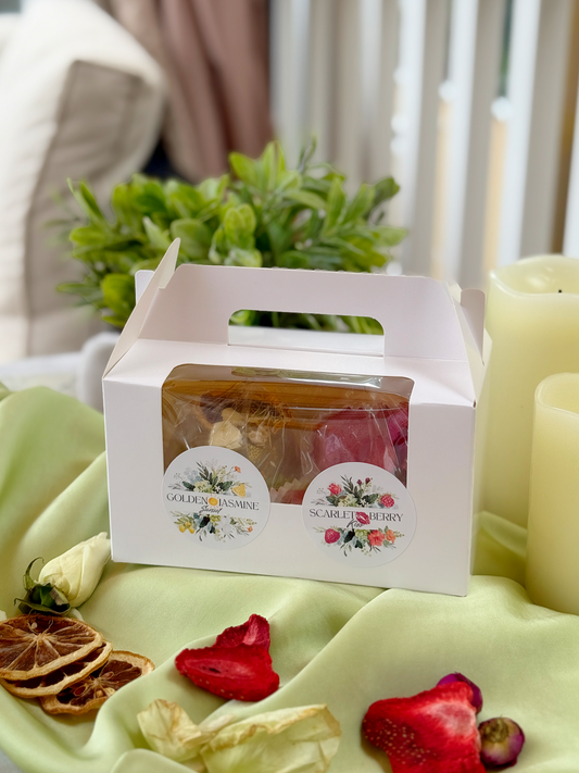 Set of Two Tea Bombs in a Gift Box – Golden Jasmine Sunset + Amber Fruit Flame