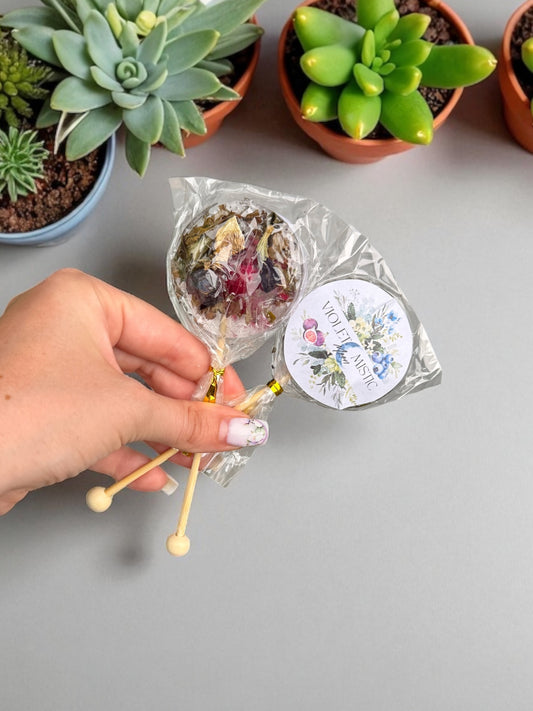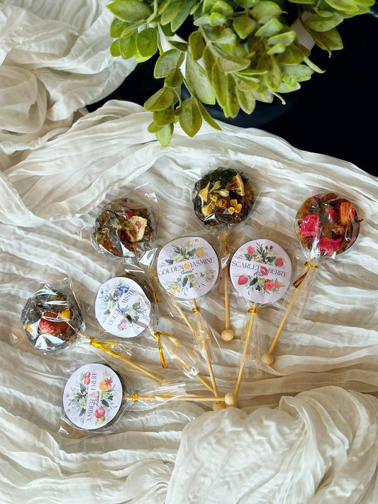 Set of 8 Artisan Tea Lollipops – Handcrafted Herbal Tea Pops with Dried Fruits & Flowers – Unique Tea Gift (Copy)