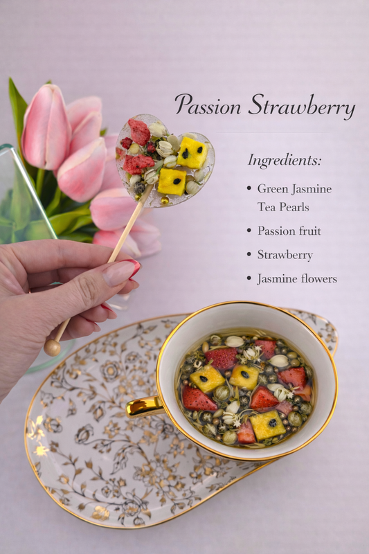 PASSION STRAWBERRY - Strawberry & Jasmine Green Tea Lollipop (Heart Shape)